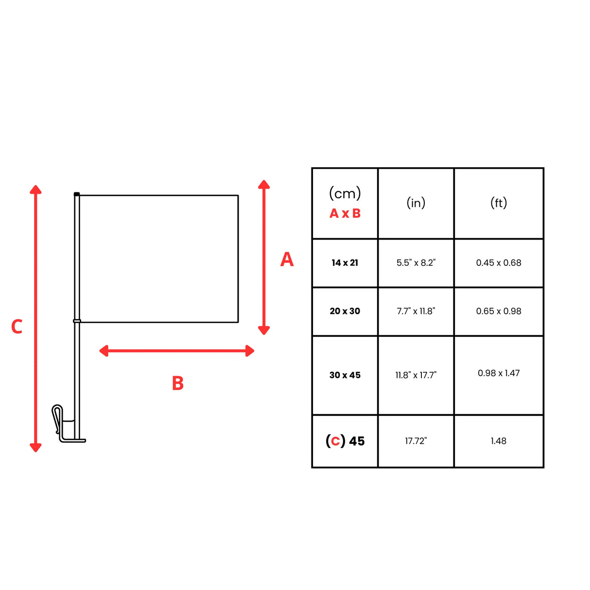 Tailles disponibles : 14 x 21 cm (5.51 x 8.26 pouces ou environ 0.45 x 0.68 pied) pour une touche discrète. 30 x 45 cm (11.81 x 17.71 pouces ou environ 1 x 1.47 pied) pour un impact plus marqué et une visibilité accrue.